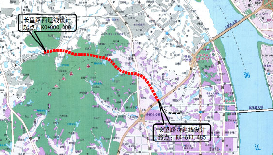 長(zhǎng)望路西延線位于湘江新區(qū)范圍內(nèi),路線呈東西走向。道路西接黃金大道,往東沿谷山森林公園北側(cè)山體埡口,穿過龍湖湘風(fēng)原著,往東接現(xiàn)狀金星北路,再向東南連接現(xiàn)狀西二環(huán),道路全長(zhǎng)4.611KM,并對(duì)長(zhǎng)望路(西二環(huán)-觀沙路)段進(jìn)行了改擴(kuò)建設(shè)計(jì),長(zhǎng)度0.611KM,金星路、黃金大道立交范圍內(nèi)的主線及輔道進(jìn)行改造。本標(biāo)段范圍為K0+000-K1+520。其中包括跨線一座、下穿式矩形框架橋一座、地下人行通道一座,線路設(shè)計(jì)為城市主干路、設(shè)計(jì)車速60km/h。
