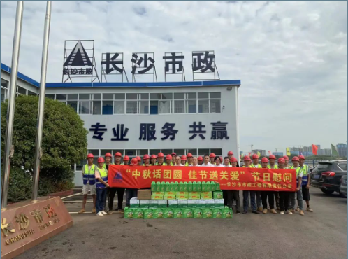 公司總經(jīng)理石含,副總經(jīng)理丁紅軍為靳江河西岸(含東山灣路)綜合整治工程項(xiàng)目、青竹湖統(tǒng)征儲(chǔ)備地塊配套路網(wǎng)工程項(xiàng)目 、秋江西路等六條路工程項(xiàng)目、長(zhǎng)沙機(jī)場(chǎng)中軸大道工程項(xiàng)目的一線員工發(fā)放了月餅、水果、礦泉水等慰問品,帶去公司對(duì)他們的問候和囑托,對(duì)大家的敬業(yè)奉獻(xiàn)精神表示高度贊揚(yáng),并叮囑大家一定要保重身體,注意安全,圓滿完成施工任務(wù)。