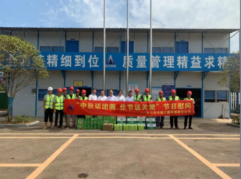 9月7日,在中國傳統(tǒng)節(jié)日中秋節(jié)來臨之際,公司黨委委員、總經(jīng)理石含,公司黨委委員、副總經(jīng)理丁紅軍領(lǐng)導(dǎo)一行深入公司重點(diǎn)項(xiàng)目開展中秋慰問活動(dòng),為節(jié)日里仍然奮戰(zhàn)在一線的職工送上了誠摯的祝福。